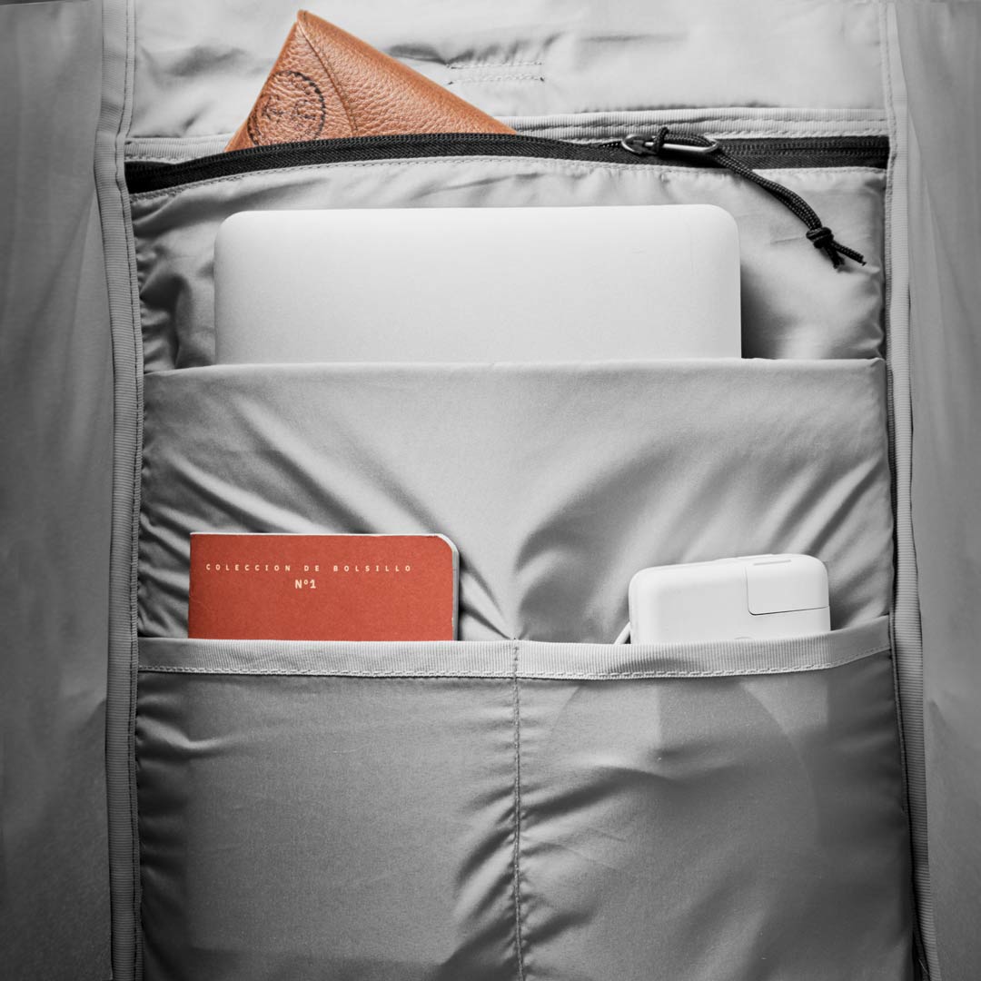 Resistencia al agua: el morral está diseñado para soportar lluvia moderada. Para situaciones de mayor intensidad, recomendamos el uso de un rain cover. No es sumergible.